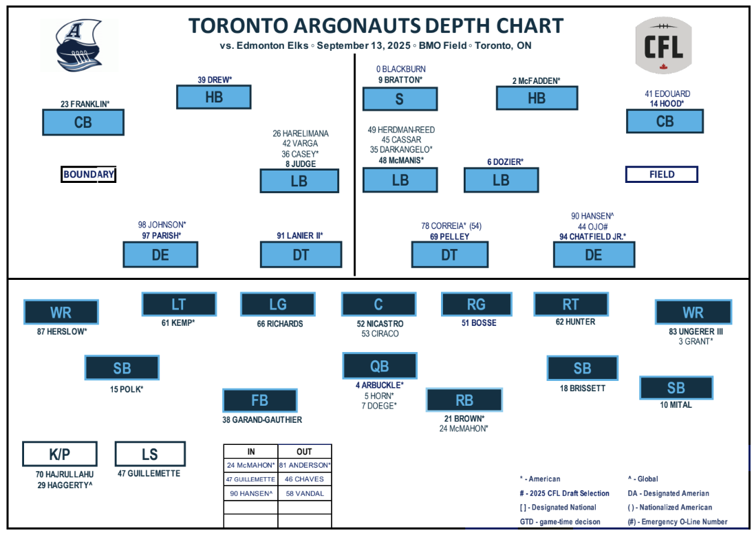 The Toronto Argonauts (4-8) will host the Edmonton Elks (5-7) on Saturday, September 13 with kickoff slated for 3:00 p.m. EDT. The Elks got a 31-19 upset win over Calgary last week, while Toronto was on a bye.