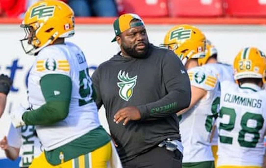 / 9 months agoLongtime CFL OL Derek Dennis guest coaching with Edmonton Elks
