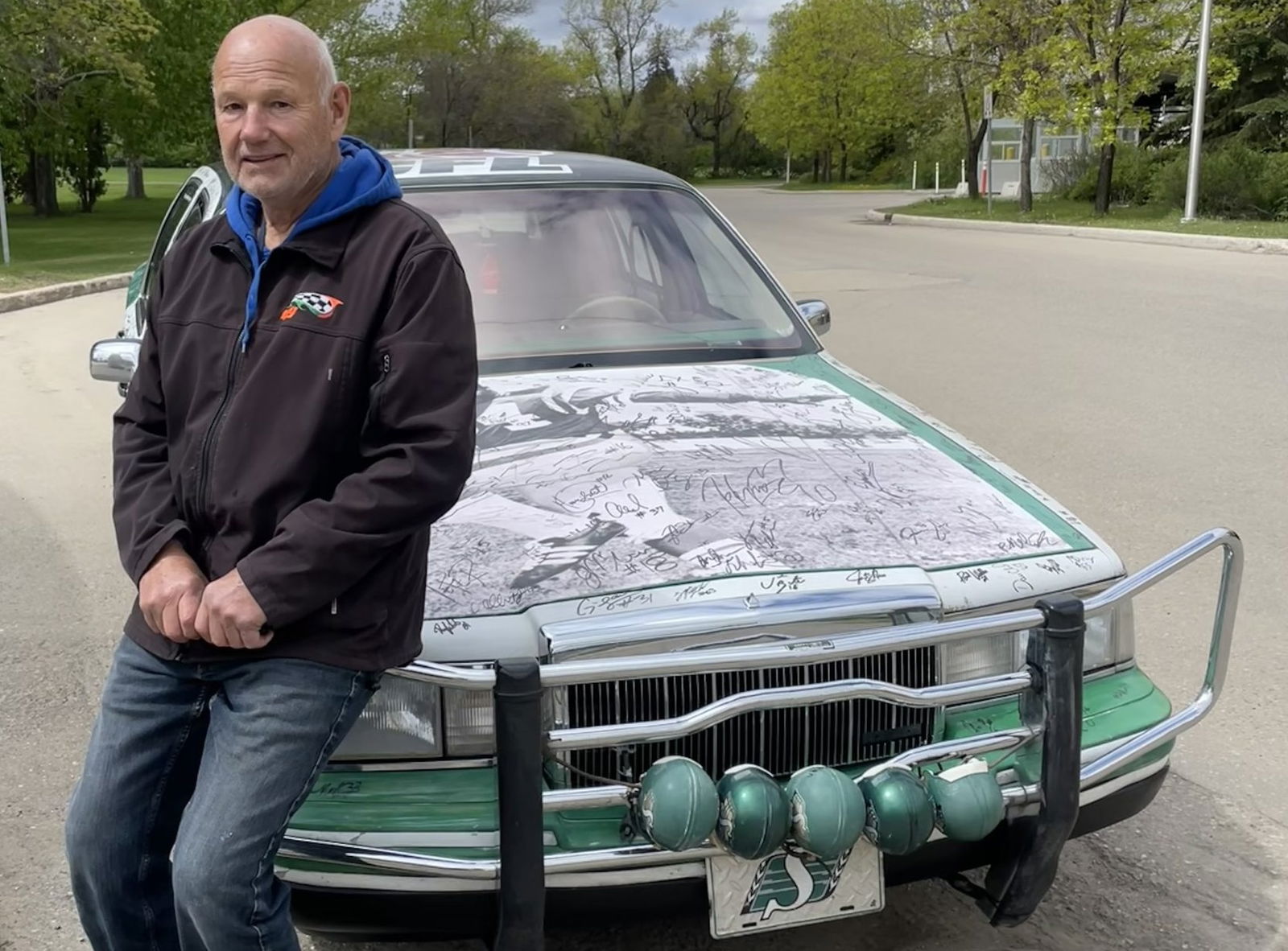 Don Pogoda pulled up to Saskatchewan Roughriders training camp at Griffiths Stadium in a unique ride. His 1988 Lincoln Town Car...