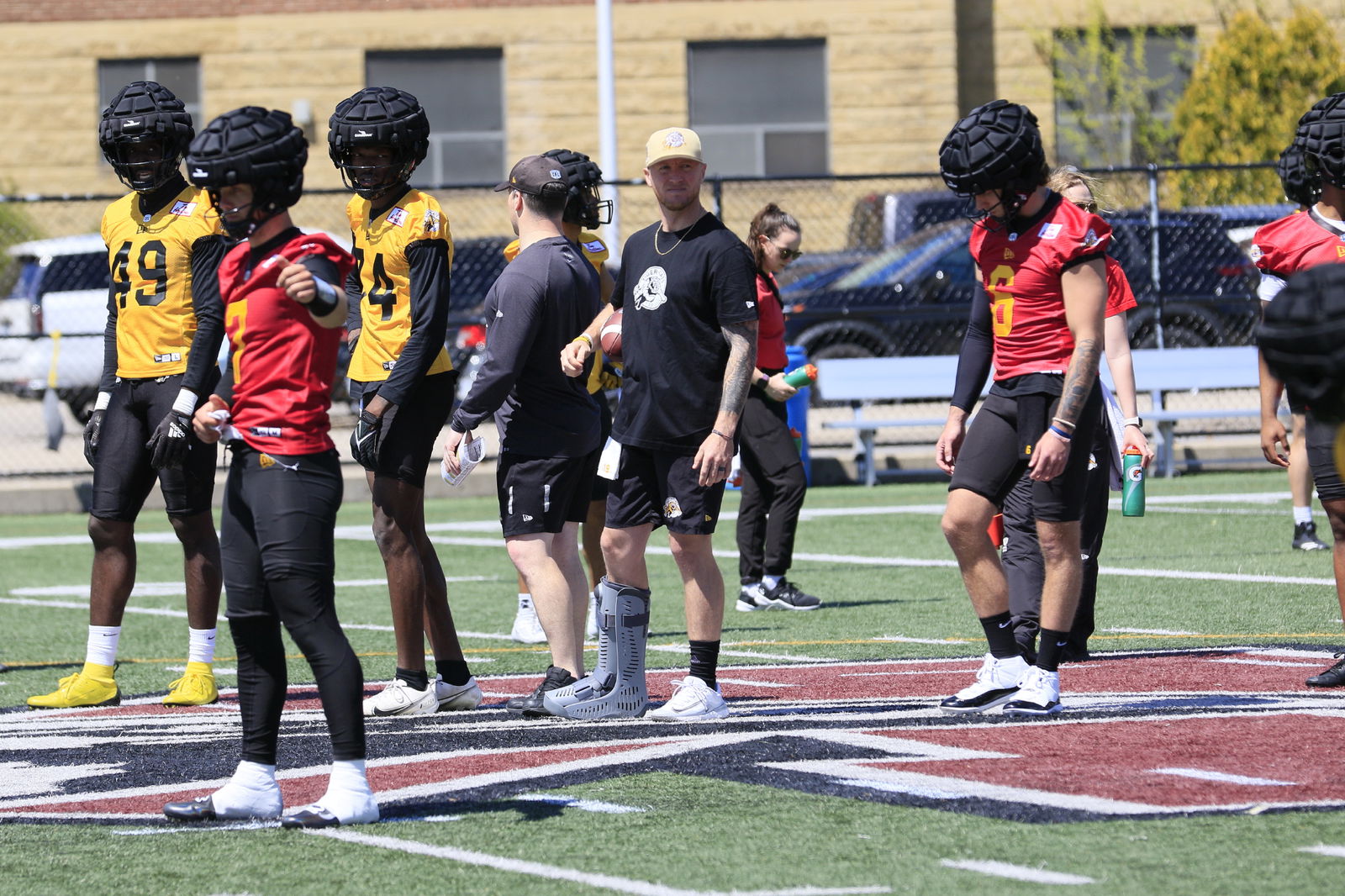 Bo Levi Mitchell is a non-participant on the opening day of rookie camp with the Hamilton Tiger-Cats and was spotted wearing...