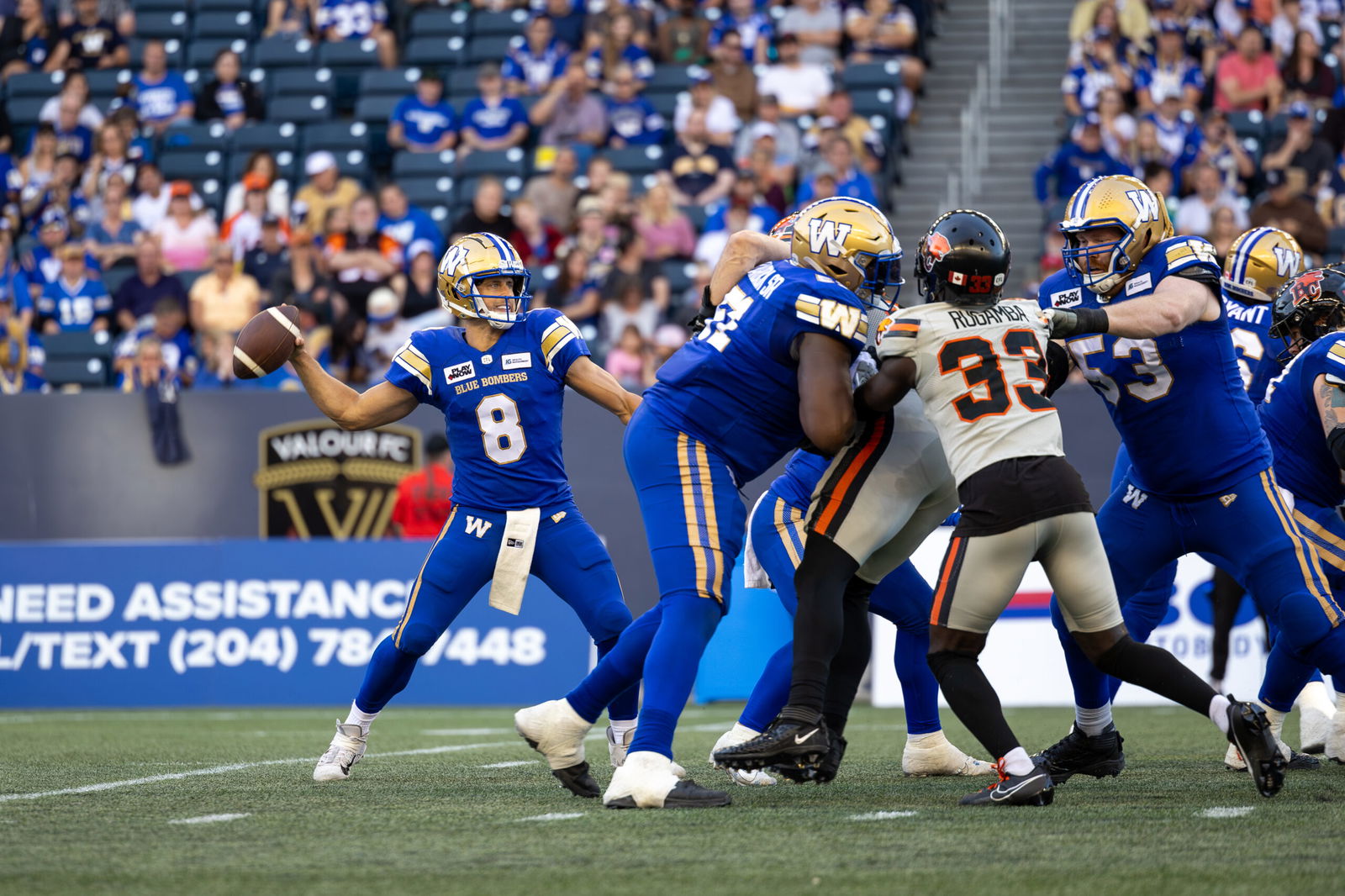 The Winnipeg Blue Bombers defeated the Saskatchewan Roughriders by a score of 31-13 in front of 33,234 fans at IG Field...